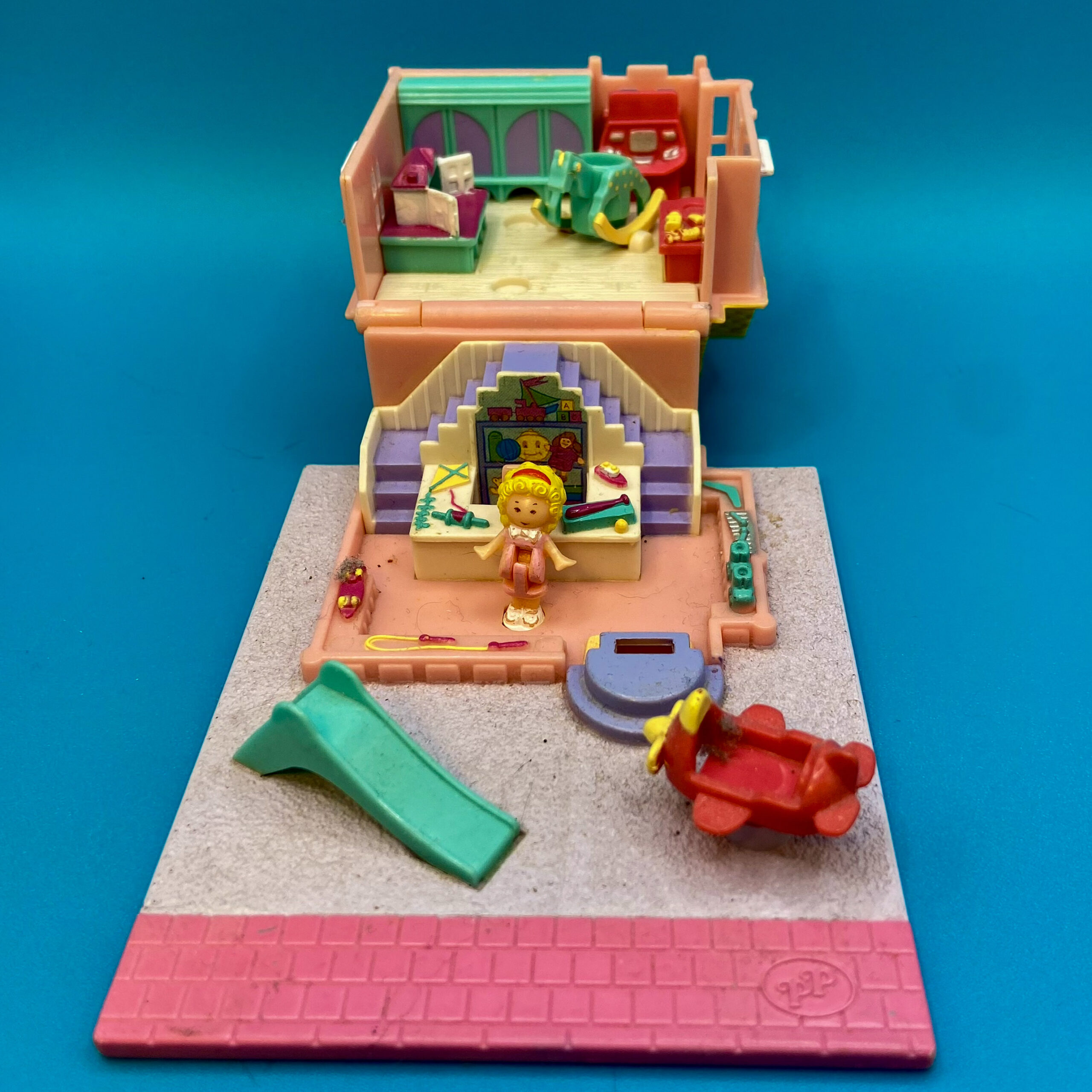 Toys within toys, there are many moments in this vintage 1993 set for the dolls to move around and play, such as a toy slide and a movable rocket to sit in. There are two stories to this playset, and it is the perfect addition to feature on a Polly Pocket street.