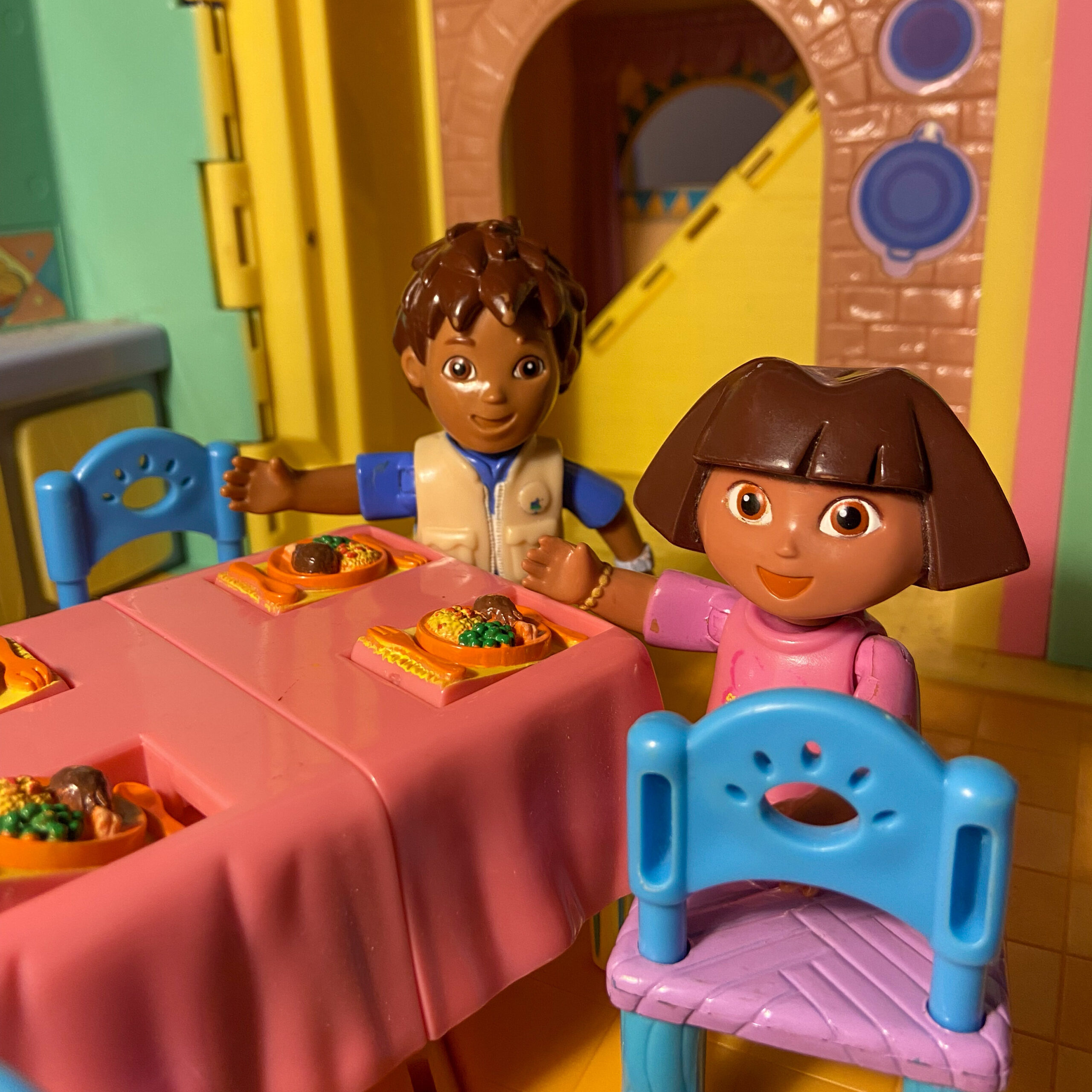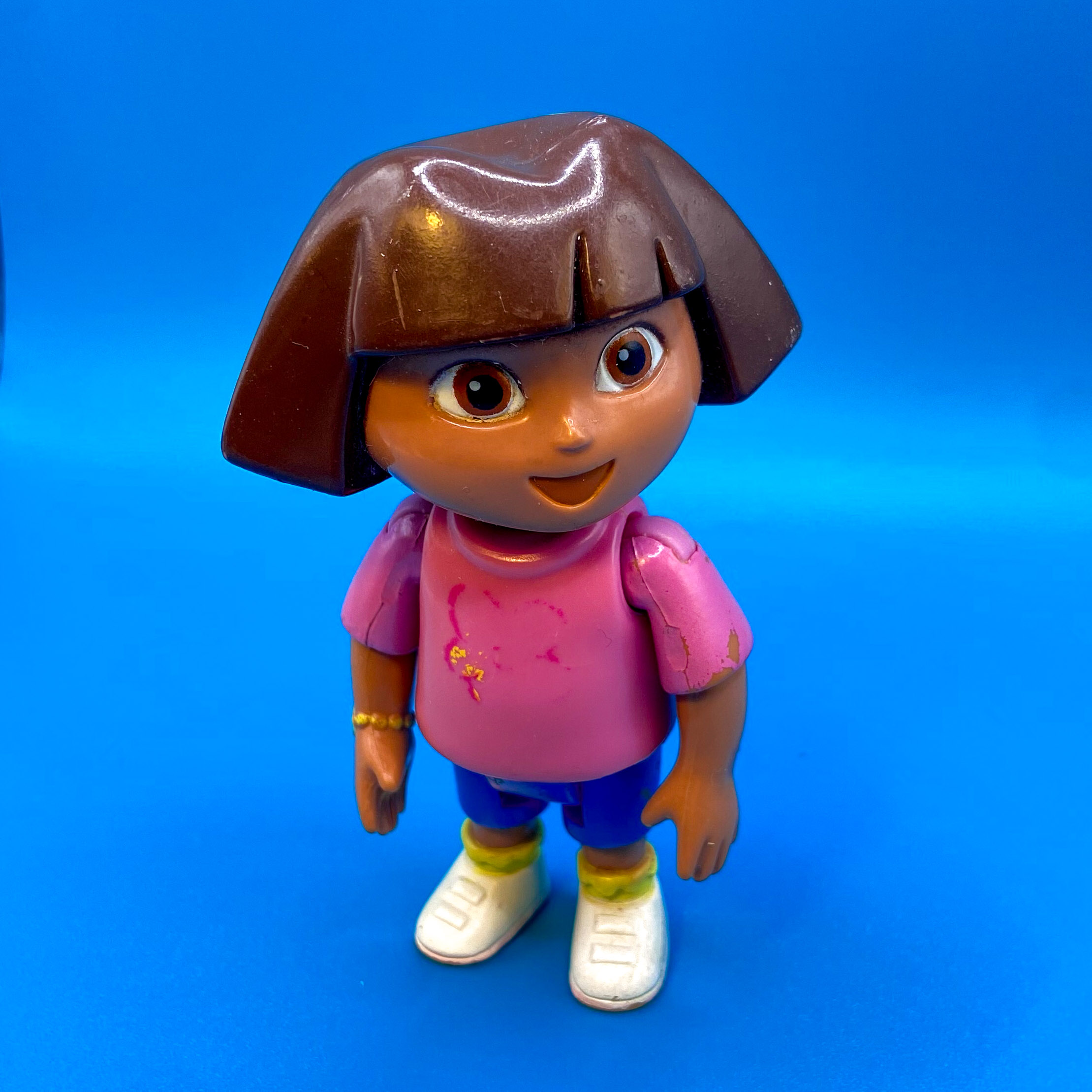 This Dora is one of many Dora figurines we had. This figurine definitely was put to good use with the distressed discoloration of her pink t-shirt, chipping paint around her eyes, and scratches in her hair. Still iconic nonetheless.