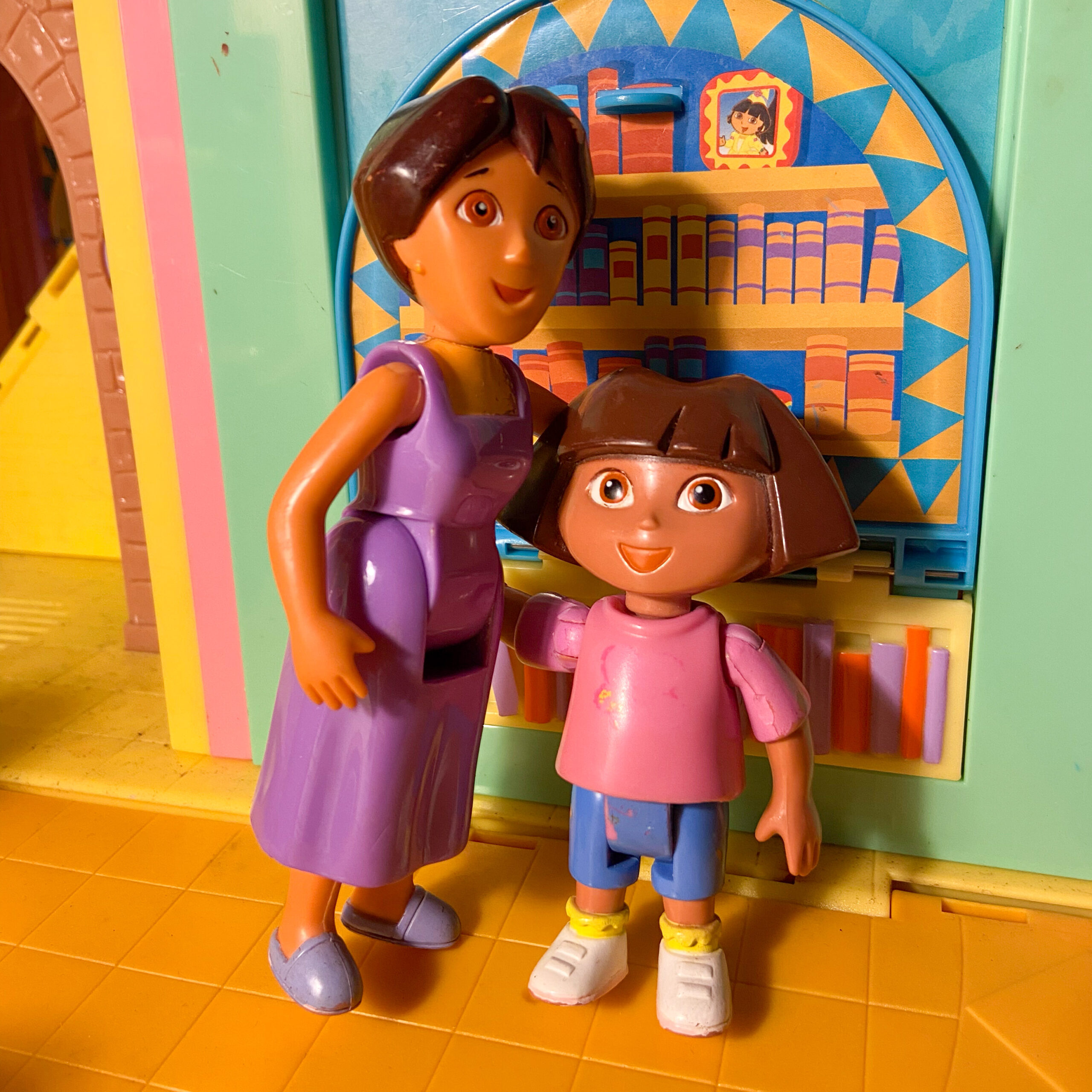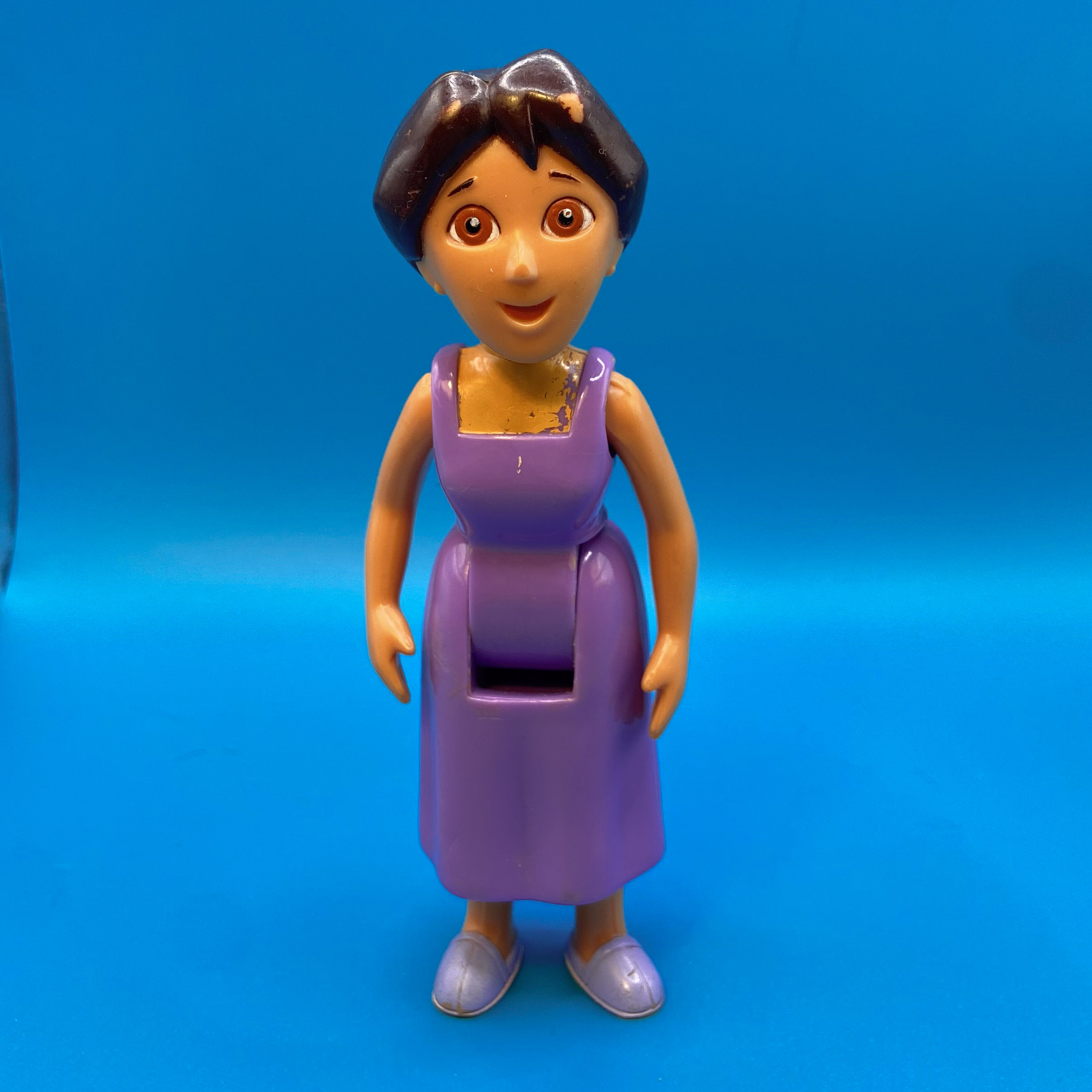 Hola to Elena. Dora’s mother Elena is a loving mother and baker who is always willing to help out in Dora’s Adventures. She wears a purple dress and light blue loafers, she can move her head, arms, and can bend at the hips.