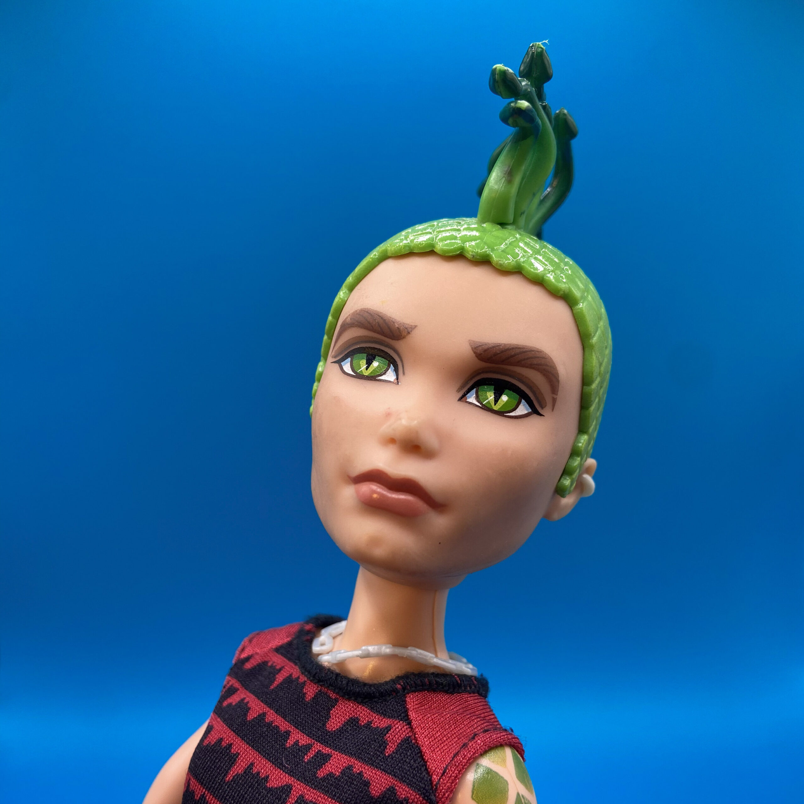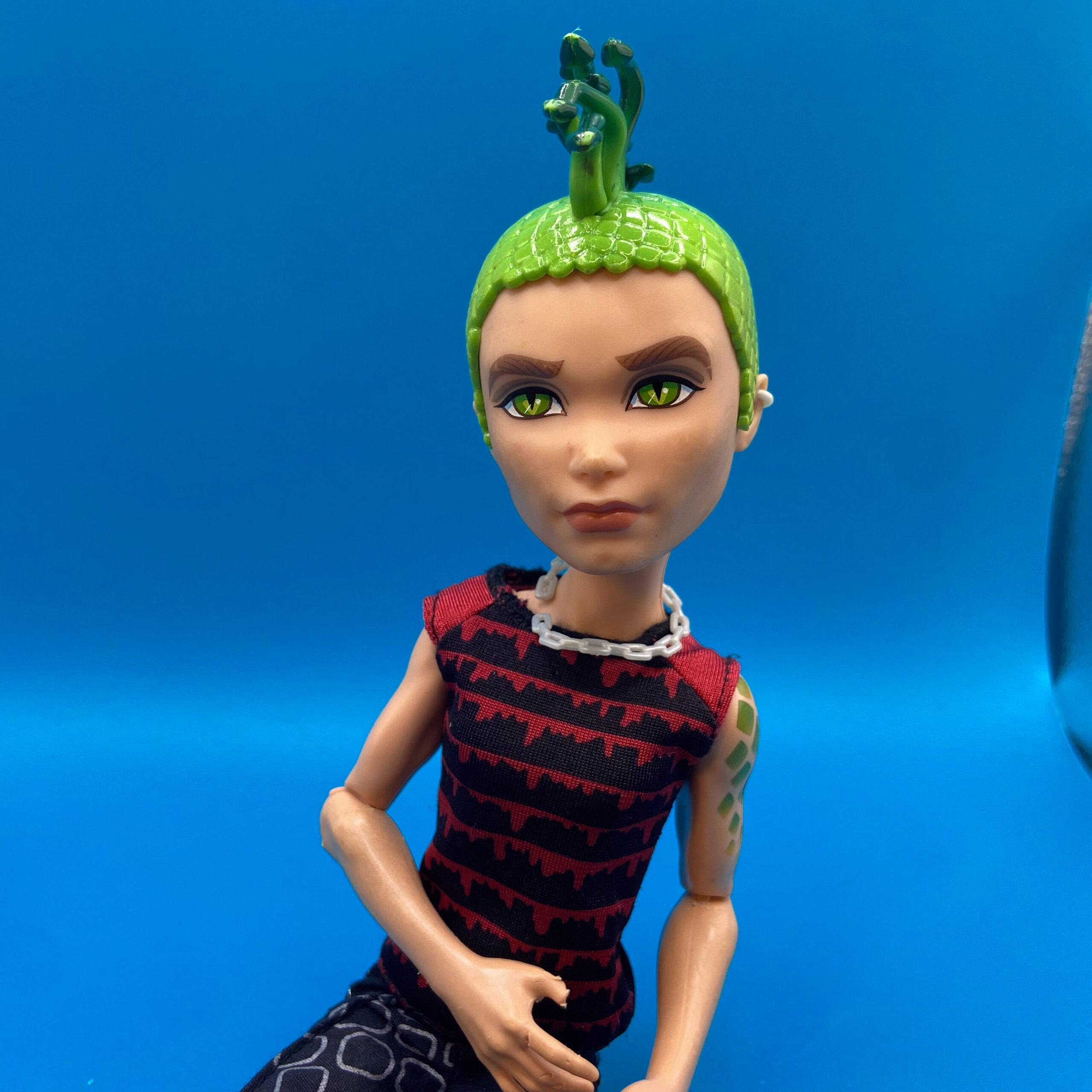 When younger, my siblings and I would often switch out the Monster High Dolls clothes with the Barbies, especially for the male dolls, since we didn’t have a lot of options. This doll is not wearing his original outfit or has the accessories he came with, it’s definitely a time capsule from the last time we picked up Deuce.