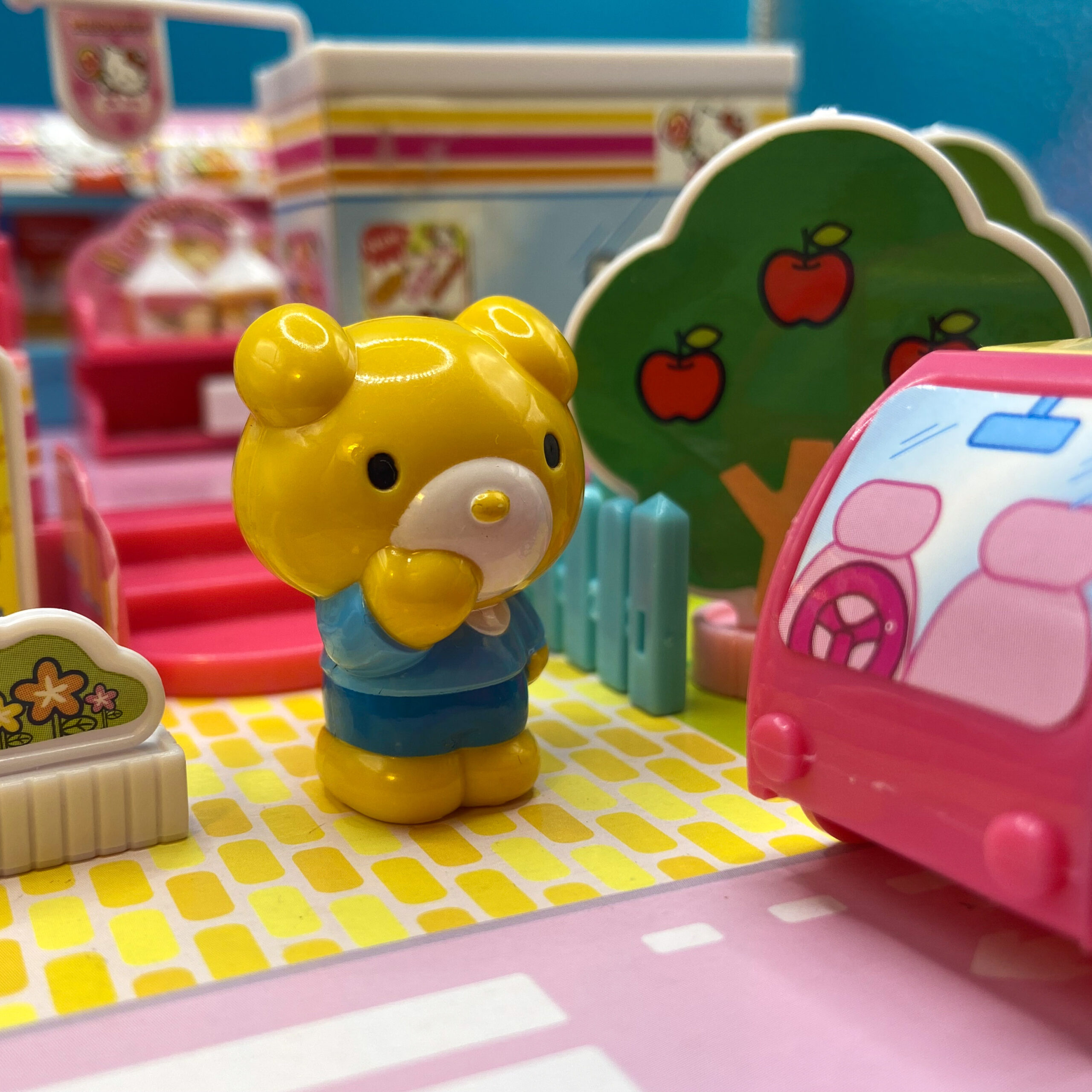 Tenorikuma was a toy from a Hello Kitty playable set. He was a part of the convenience store set that I remember my parents gave to my sisters and me during one of our first family trips. I can remember going to Lake Tahoe, California. This is also my first ski trip. Tenorikumas convenience store had so many opportunities to decorate it how you wanted through little plastic milk cartons or boxes that could become tissues with the application of a sticker.